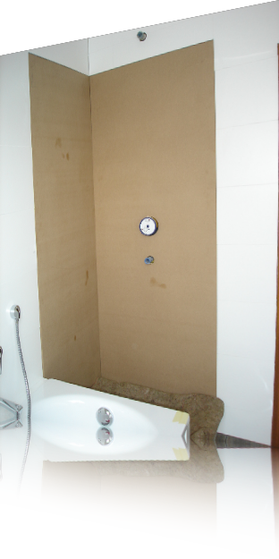 Die fertigen Duschrückwände.